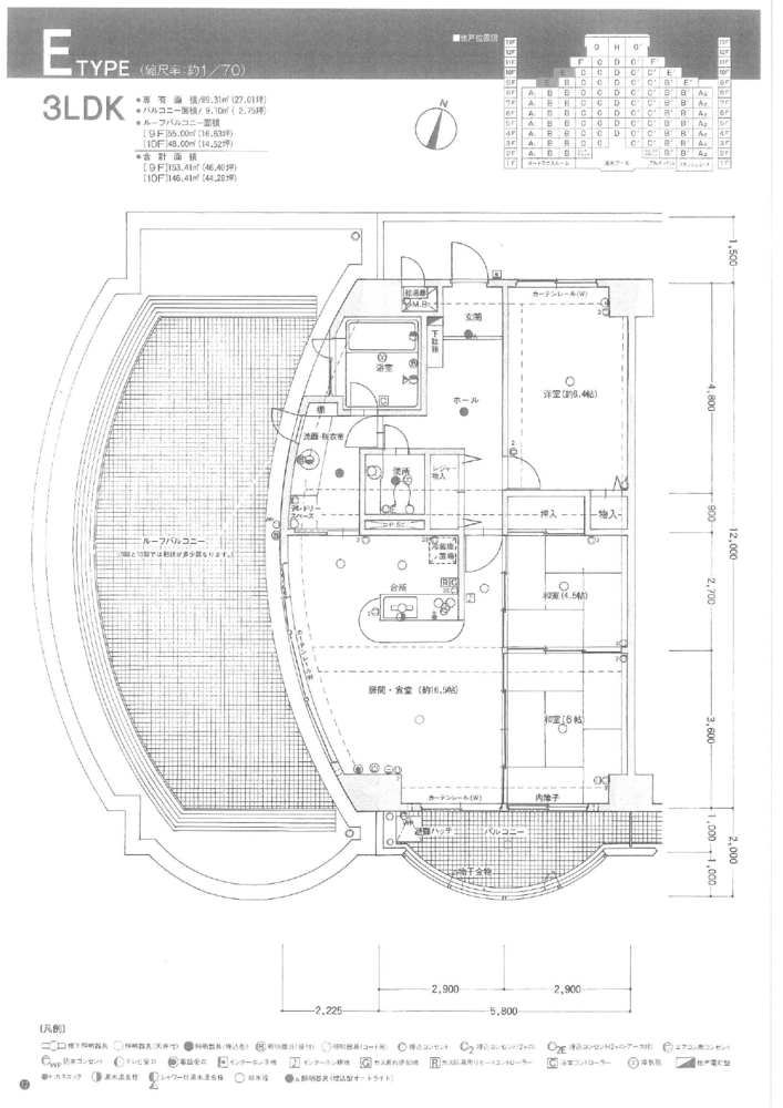 専有面積89.31㎡ バルコニー面積9.10㎡ ルーフバルコニー48.00㎡
